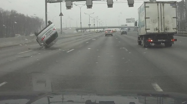 Легковушка с уснувшим водителем перевернулась на МКАД