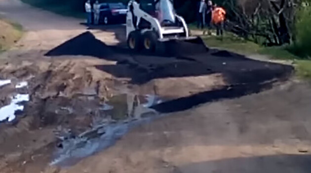 В Саратовской области к приезду губернатора асфальт спешно уложили на грязь и землю