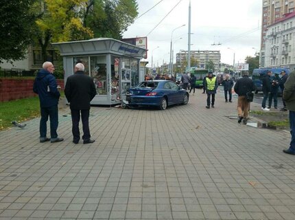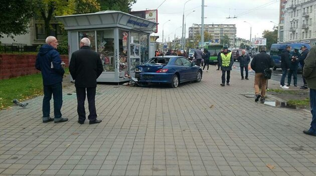 Peugeot врезался в киоск "Белсоюзпечати" в Минске