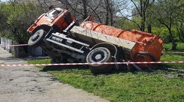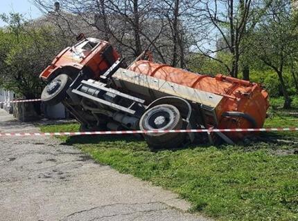 Спецавтомобиль «Водоканала» провалился в канализацию в Новороссийске