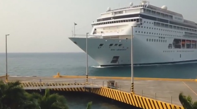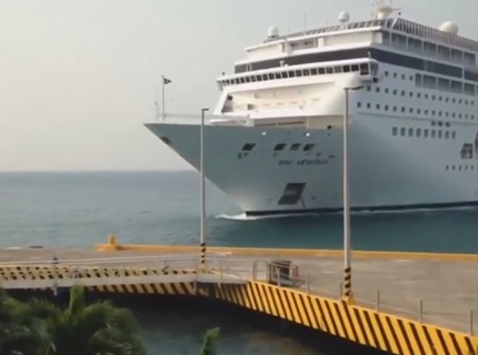 Столкновение круизного лайнера с пирсом в Гондурасе попало на видео
