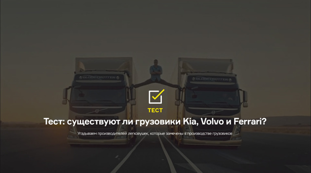 Тест: существуют ли грузовики Kia, Volvo и Ferrari?