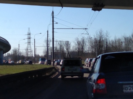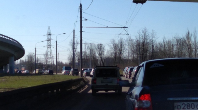 Из-за аварии с грузовиком Брагино встало в огромную пробку