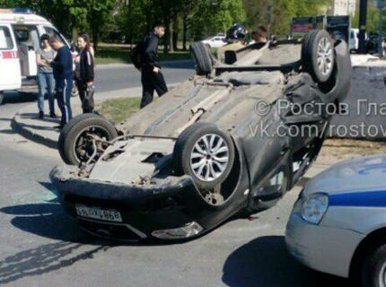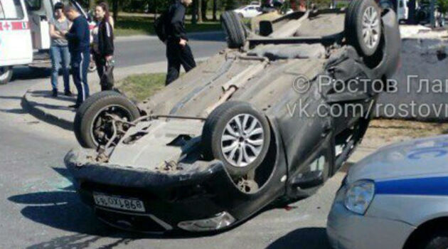 В Ростове иномарка опрокинулась на крышу после столкновения с «Шевроле»: один человек ранен