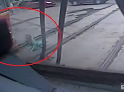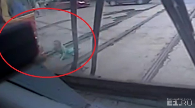Камера сняла момент падения девочек-зацеперов с «колбасы» трамвая на Вторчермете