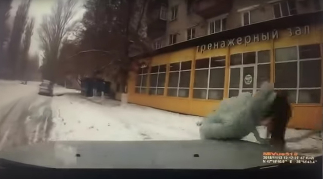 В Таганроге водитель догнал девушку и сбил ее у тротуара. Видео