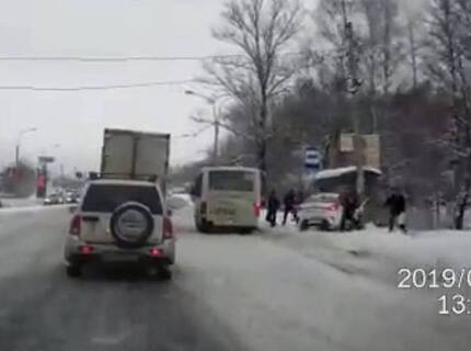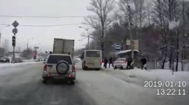 Уходивший от столкновения с маршруткой таксист врезался в остановку с людьми