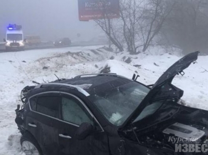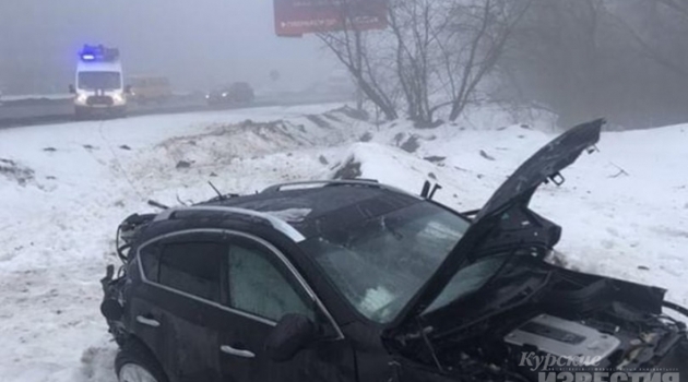 В Курске на проспекте Дериглазова легковушка врезалась в фуру и слетела в кювет