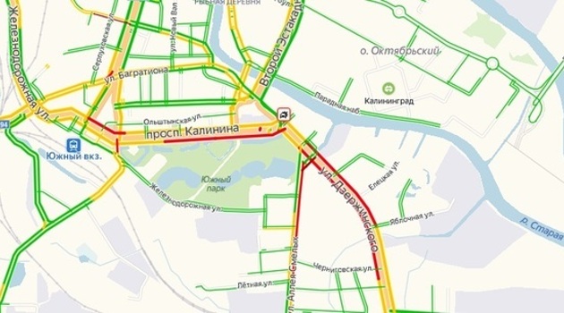 На проспекте Калинина образовалась километровая пробка из-за ДТП с участием трёх машин