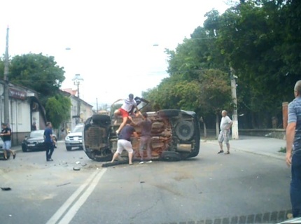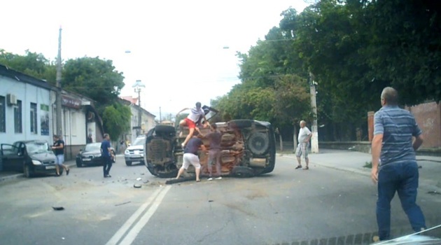 Авария с переворотом: столкновение трех авто в Симферополе попало на видео