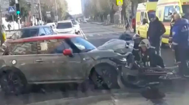 Volkswagen Passat и Mini Cooper столкнулись на улице Зиповской в Краснодаре (видео)