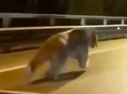Привет, медведь! По трассе в Красную Поляну бегал бурый медведь (видео)