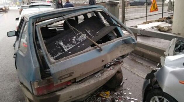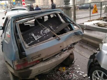 В Самаре внедорожник "запрыгнул" на бетонный блок
