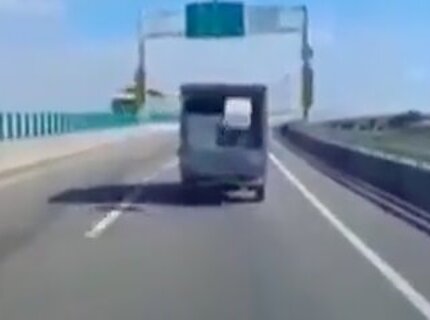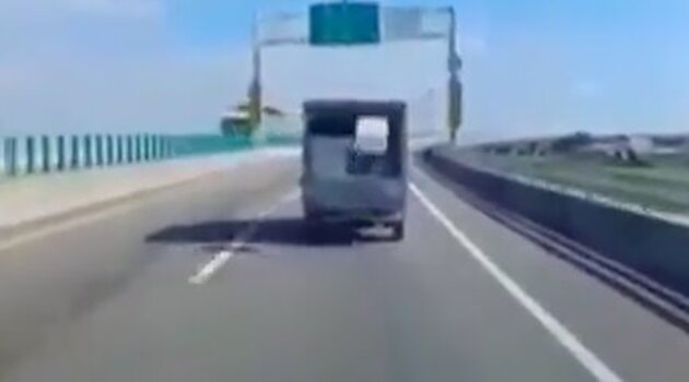 Выпавшая из кузова грузовика коробка сама вернулась на место