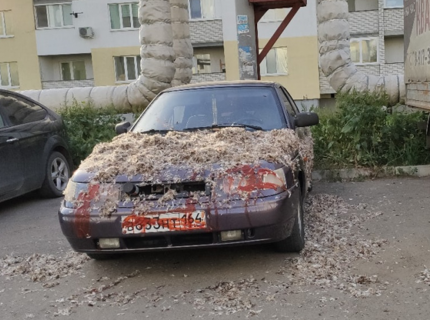 В Иволгино легковушку обсыпали перьями и облили кетчупом