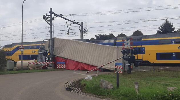 Пассажирский состав снёс застрявший на путях грузовик в Голландии