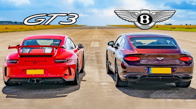 Дрэг-гонка: «трековый» Porsche 911 против Bentley Continental GT