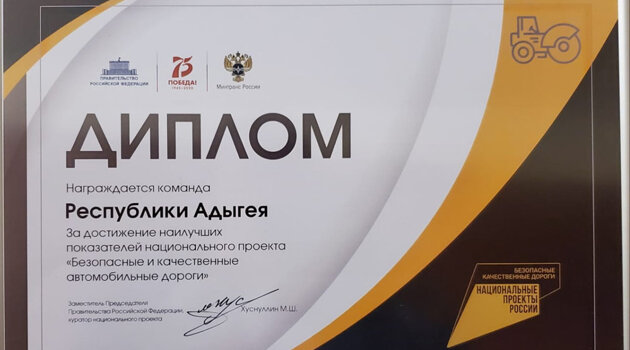 Адыгея удостоена диплома Правительства РФ за реализацию нацпроекта