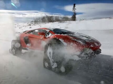 Lamborghini Aventador на гусеницах застрял в сугробе во время первого теста