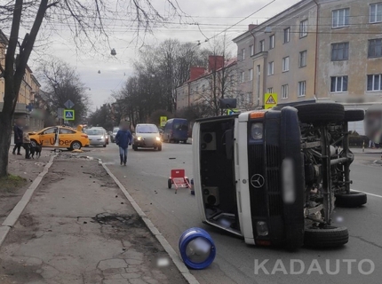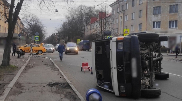 В Калининграде перевернулся микроавтобус и выронил бочки с пивом