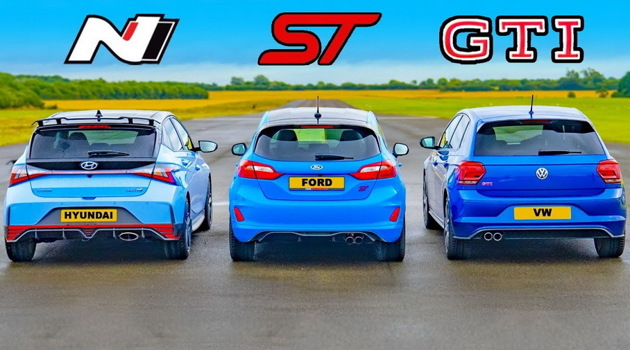 Видео: хот-хэтчи Ford, Hyundai и Volkswagen сразились в дрэге