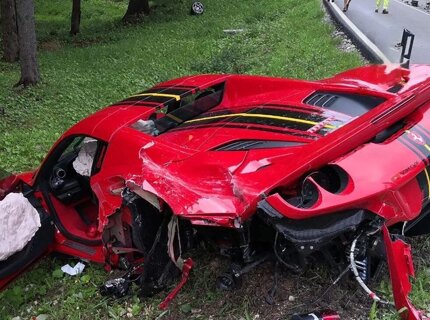 Посмотрите на Ferrari F8 Tributo, уничтоженную о грузовик
