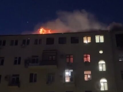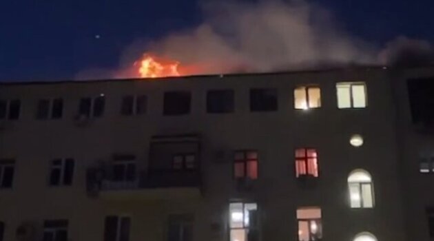 Кровля загорелась в семиэтажном здании на Тверской улице
