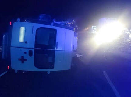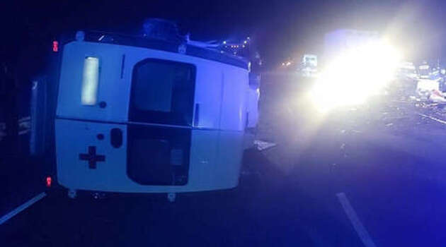 Под Волгоградом "скорая" протаранила два автомобиля на встречной полосе и перевернулась