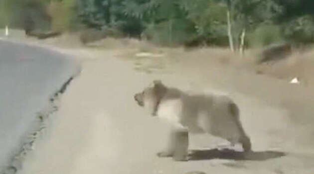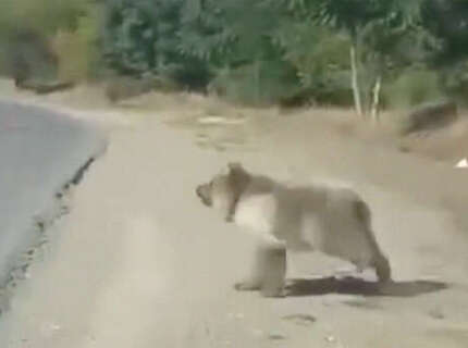 В Дагестане водитель снял на видео любопытного медведя, выбежавшего на дорогу