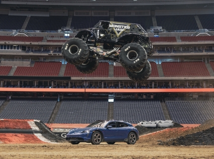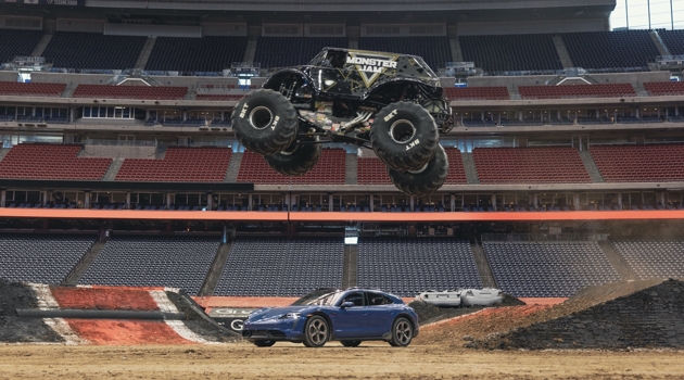 Посмотрите на прыжок бигфута через Porsche Taycan Cross Turismo