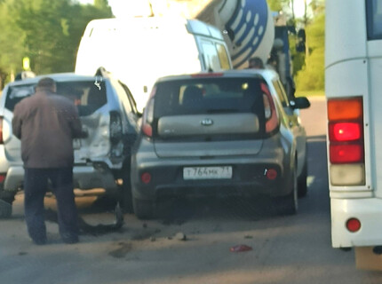 Водитель Kia спровоцировал массовое ДТП с бетономешалкой под Тулой