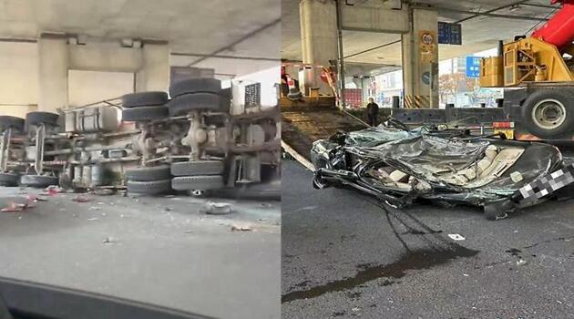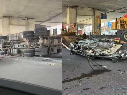 Водитель чудом выжил в расплющенной бетономешалкой легковушке