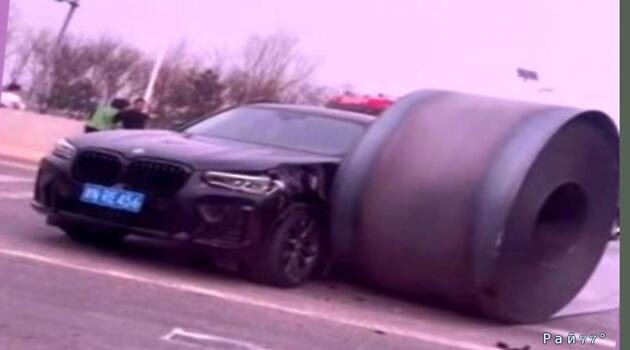 Владелец БМВ чудом не оказадся под 14-тонной катушкой со стальной лентой