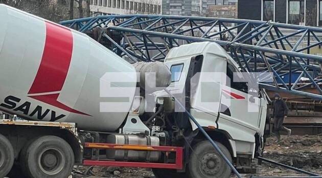 В Москве строительный кран упал на бетономешалку вместе с водителем внутри