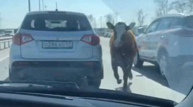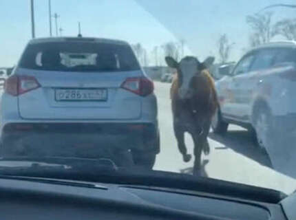 В Ленобласти бык игнорировал ПДД и помял несколько автомобилей