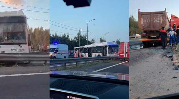 Пять человек пострадали при столкновении автобуса и грузовика в Ленобласти