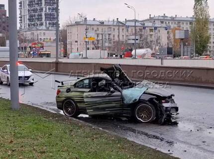 В Москве спорткар BMW с человеком в салоне влетел в столб и попал на видео