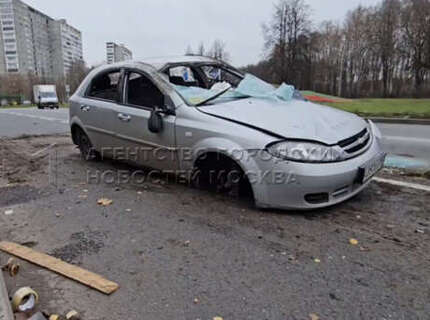 Легковой автомобиль перевернулся на бок посреди дороги на востоке Москвы