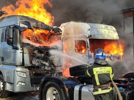 Восемь автомобилей повреждено огнем во время пожара на автостоянке