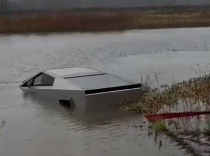В болоте в Новой Москве увяз Tesla Cybertruck
