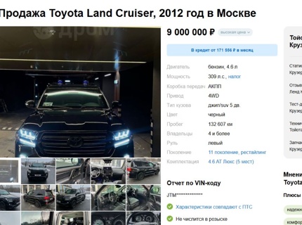 Почти новый Land Cruiser 2009 года выставили на продажу в России: цена удивит