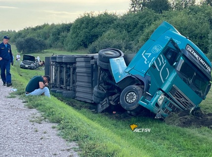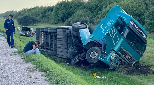 Слетели в кювет: фура столкнулась с Subaru Outback под Новосибирском – есть пострадавшие