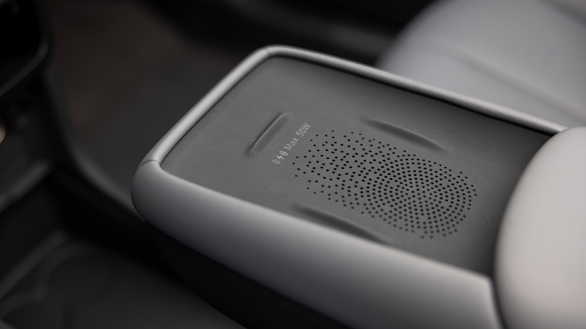 На центральной консоли есть беспроводная зарядка для смартфонов, а в подлокотнике — глубокий бокс и раскладной подстаканник. Пара гнёзд Type C и 12-вольтовая розетка расположены и под экраном медиасистемы.