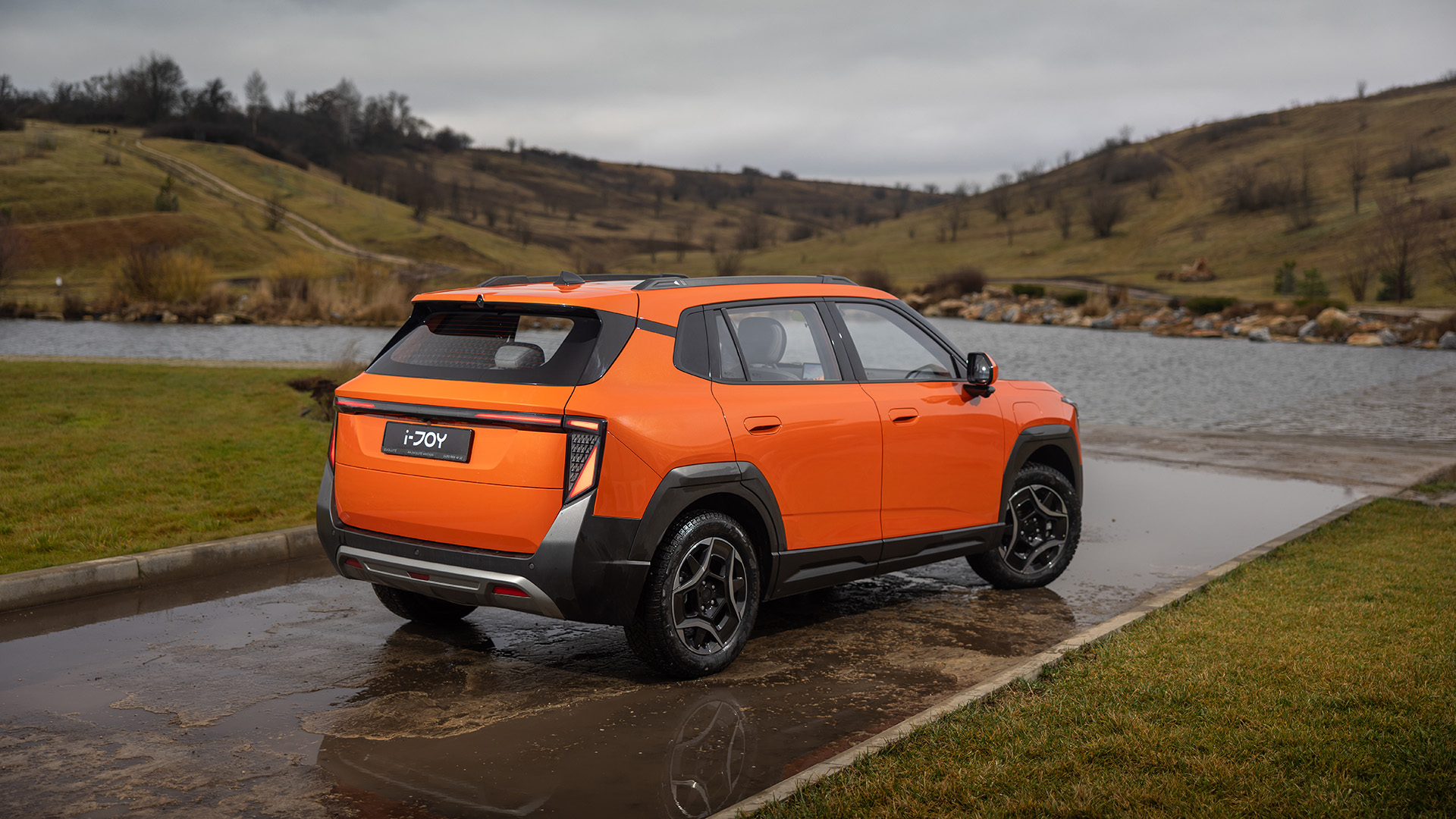Но стоит съехать с асфальта на грунтовку или даже наткнуться на небольшие ямы и не самых крупных лежачих полицейских, как тут же осознаёшь, что демпферы настроены на очень жёсткий ход. Даже при преодолении не самых крупных неровностей на кузов передаются ощутимые вибрации и удары. Правило «больше ходу — меньше ям» с ним точно не работает. В этом смысле i-Joy ощущается скорее приподнятым хэтчбеком, нежели традиционным кроссовером с энергоёмкой ходовой. Всё-таки идеальная среда для его обитания — это городские улицы. С другой стороны, всё вполне логично. Ну откуда взяться в полях и лесах зарядочным станциям?