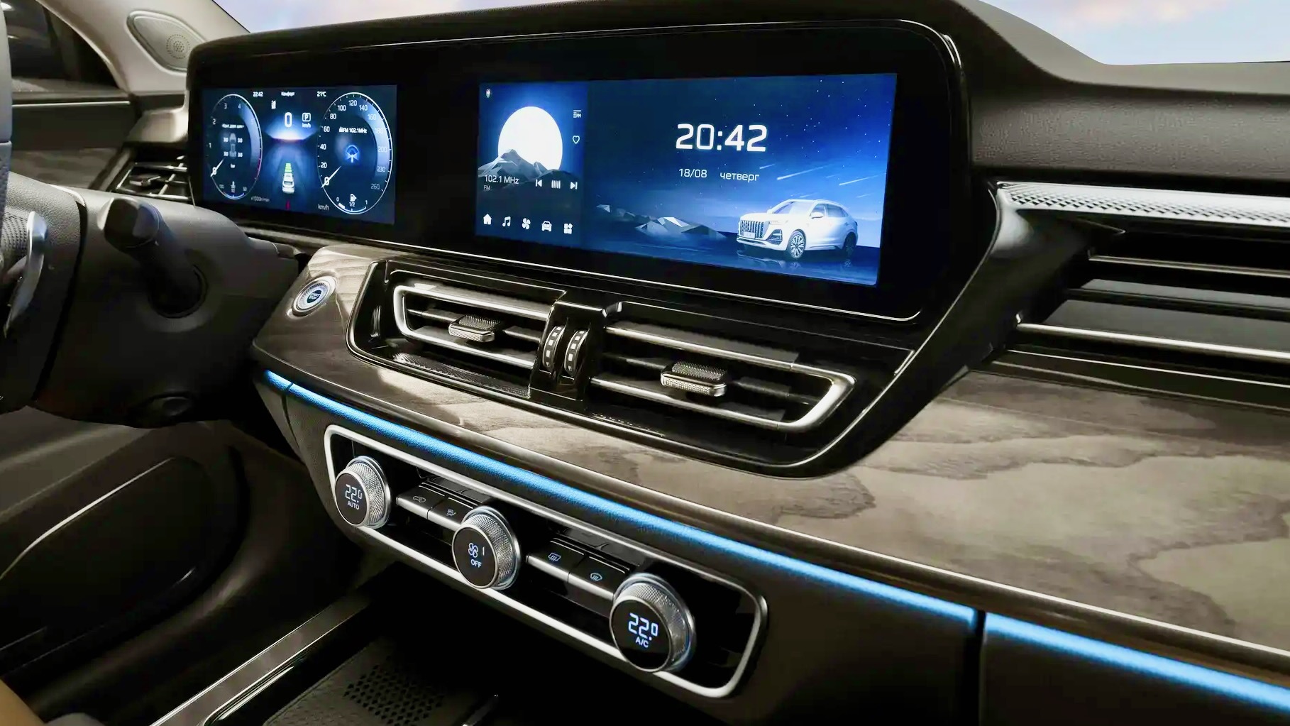Открываю водительскую дверь, и первое ощущение — воздух. Салон действительно большой. Ровная архитектура панели, мягкие материалы, уже знакомая по другим китайским моделям логика интерфейса. Всё интуитивно понятно: где обогрев, где климат, где настройки кресла.