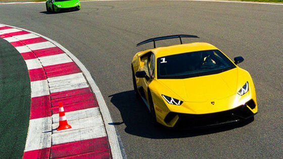 Похоже, именно итальянцы вместе с машинами привезли этим летом в Россию теплую погоду. В день теста гоночный трек Moscow Raceway с самого утра согревали солнечные лучи и быстро подсушили трассу, изрядно промытую нескончаемой чередой проливных дождей. Первыми на трек выкатили Lamborghini Huracan Performante и безмолвную утреннюю тишину прорвал сочный звук 640-сильного V10. Performante, самая мощная версия Lamborghini Huracan, кроме многих улучшений от мотора до покрышек, оснащена еще и технически продвинутым аэродинамическим пакетом. Но, на все про все - четыре круга. Чтобы с первых же метров прочувствовать автомобиль, необходимо как можно удобнее устроиться за рулем. Впервые за рулем Lamborghini, легендарной модели Diablo, я выехал на трек двадцать лет назад, и до сих пор помню, как едва поместился в машине. Там было настолько тесно, что о каком-либо управлении не могло идти и речи. Сейчас в Huracan, можно сказать, простор – сервомеханизмом я быстро опускаю полностью вниз подушку сидения, затягиваю потуже обычный трехточечный ремень безопасности, проверяю не мешают ли колени свободно действовать рукам на руле. По команде инструктора, включаю, потянув на себя правый подрулевой лепесток, первую передачу, и двигаюсь на трек за ведущей машиной. По ходу дела на руле активирую самый щадящий режим Strada, в котором тяга мотора контролируется ESP. Первый круг проезжаю с автоматическим переключением передач, знакомясь параллельно с машиной и с оптимальной траекторией трассы. На подобной конфигурации трека, которых на Moscow Raceway может быть несколько и разной длины, проходит российский этап DTM: пара эсок - медленная и быстрая, - один затяжной поворот и два скоростных участка, включая прямую старт-финиш. За моей спиной ревет знакомый еще по Audi R8 атмосферный V10. Это «суперкаровский» мотор получил, в сравнении с предшествующей версией Huracan LP 610-4, прибавку в 30 л. с. мощности и 40 Нм крутящего момента. Накачка производилась в основном за счет новых распредвалов, блока управления двигателем и коллектора, бронзового, как у того самого Diablo. Атмосферник работает в содружестве с 7-ми ступенчатой коробкой- «роботом» с двумя сцеплениями и полным приводом с многодисковой межосевой муфтой Haldex пятого поколения. Весь этот набор дополняют более жесткое шасси и углеродокерамические тормозные диски. Руль делает от упора до упора почти три солидных оборота, но передаточное соотношение рулевого механизма изменяется в зависимости от режима движения. Повороты на выбранной конфигурации трека были не настолько острыми, чтобы потребовалось перехватывать руль. Виражи получалось проходить быстро, наслаждаясь не только мощью и динамикой, сравнимой с болидом Formula 1 - 2,9 с до 100 км/ч, - но отличным балансом шасси Huracan. Особенно хорошо это почувствовалось в единственном затяжном правом, где аккуратно работая рулем и плавной подачей газа можно прощупать грань сцепления 20-дюймовых колес, обутых в будто липнущие к асфальту споркаровские шины Pirelli. После ознакомительного круга инструктор, заметив, что обе машины уверенно висят у него на хвосте, взвинтил темп, предложив по рации перейти в более шустрый, а вернее, самый хулиганистый режим Sport. В нем на заднюю ось перекидывается больше тяги, легко, несмотря на широченные покрышки размерности 305/30R20, срывающей корму в дрифт. Сделать это особенно просто, когда 70% крутящего момента доступны у