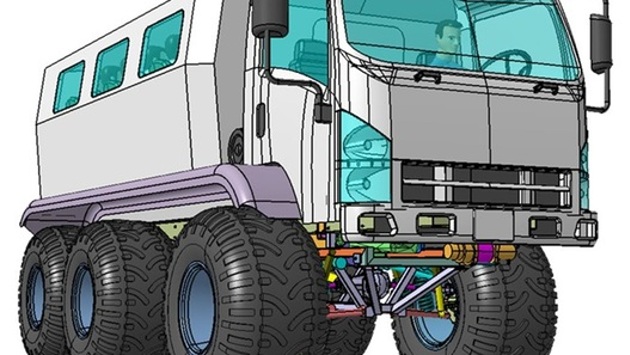 В данный момент в компании ведется работа над созданием рамы, трансмиссии и кабины перспективного вездехода, сообщает "Волга Ньюс". Одна из важнейших задач конструкторов - разработать колесный редуктор, который значительно увеличит проходимость экстремального грузовика в суровых условиях. Самостоятельно "Ладуга" разрабатывает и шины - речь идет о полутораметровых колесах сверхнизкого давления. Хит-парад. Такси для "Вежливых людей". Разрабатываемое семейство внедорожников будет представлено в разных вариантах грузоподъемности - от 3 до 10 тонн. По мнению генерального директора компании "Ладуга" Валерия Овчинникова, арктический вездеход будет востребован логистическими компаниями, газовиками, исследователями крайнего севера. "Наш конечный продукт — это платформа, на которой любая компания сможет собрать свой вездеход. Прототип такого вездехода для нашего заказчика будет создан из оригинальных и покупных узлов уже в этом году", - заявил Овчинников. Примечательно, что в конструкции вездехода планируется использовать узлы и агрегаты, ранее разработанные компанией для других заказчиков. Например, под характеристики вездехода отлично подошел главный редуктор, который ранее был спроектирован компанией для "УАЗа". В целом же "Ладуга" занимается автомобильным инжинирингом для концернов Daimler, General Motors, "АвтоВАЗ", "КамАЗ" и "Ростсельмаш".