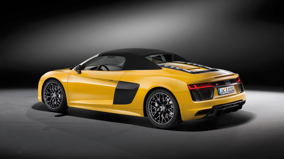 Audi R8 Spyder оснащается атмосферным 5,2-литровым двигателем V10, который на базовых машинах выдает 540 сил, а на версии plus -- 610 сил. Последний из этих вариантов позволяет машине набирать «сотню» за 3,3 секунды — на 0,3 секунды быстрее обычного родстера.