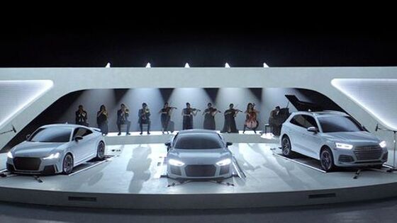 Двигатели «заряженных» автомобилей Audi исполнили заглавные музыкальные темы к популярным сериалам — «Веселая компания», «Шоу Мэри Тайлер Мур» и «Звездный путь». Таким образом производитель решил отметить то, что уже седьмой год подряд выступает главным автомобильным спонсором американской телевизионной премии «Эмми». Для этого в концертном зале установили три горячих модели Audi: TT RS, SQ5 и R8. Купе с индексом RS оснащается 2,5-литровым 400-сильным двигателем, спортивный кроссовер SQ5 — трехлитровым V6 мощностью 354 лошадиные силы (500 Нм крутящего момента), а R8 — V10 объемом 5,2 литра и мощностью 610 лошадиных сил (500 Нм). Музыкальные эксперименты с моторами не редкость — особенно в этом преуспели инженеры команд Формулы-1. В исполнении болидов можно услышать «Боже, храни королеву», Happy Birthday или We are the Champions, Queen.