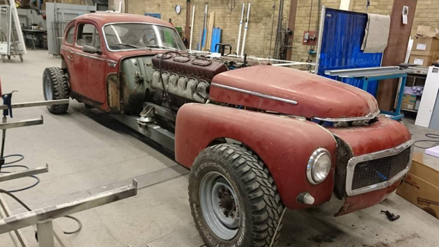 Житель Швеции Виктор Йонсон оснастил малолитражку Volvo PV544 образца 1960 года дизельным двигателем от военного мостоукладчика. Для этого он растянул шасси почти на шесть метров и поставил на него подвеску от тяжелого пикапа General Motors, сообщает The Drive.